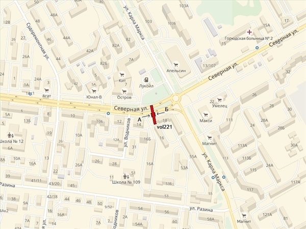 Северная ул., 18, напротив ТРЦ "Остров", 150м до пересечения с ул. Карла Маркса, справа при движении из центра