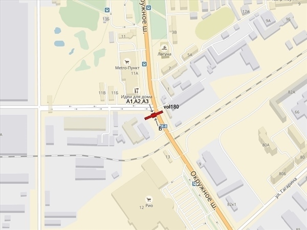 Окружное шоссе, 13Б, между ТРЦ "РИО" и "Метро", справа при движении в город