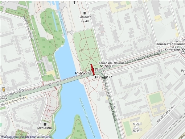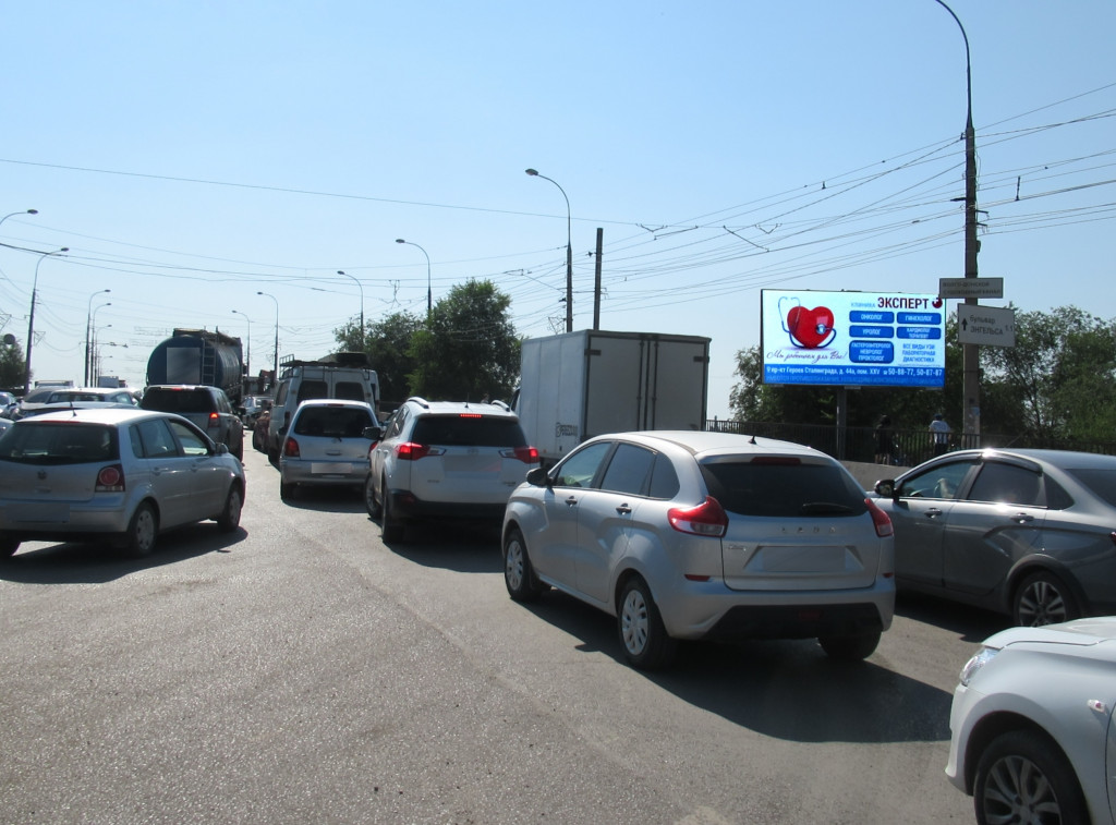 Героев Сталинграда пр-т, пересечение с ул.Фадеева, заезд на мост через Волго-Донской канал, справа при движении в центр