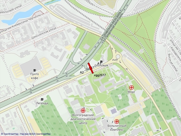 Землячки ул., 41Б, напротив Больничного комплекса, сторона А1 - справа при движении к Самарскому разъезду, 400м до гипермаркета "Лента", сторона А2 - слева при движении к пр-ду Дорожников