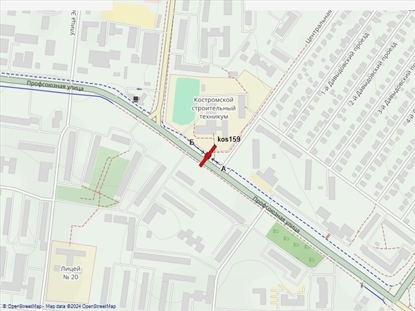 Профсоюзная ул., за пересечением с ул. Центральной, в районе Костромского строительного техникума, справа при движении в центр