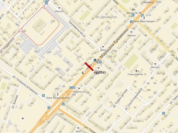 Еременко ул., 21, справа при движении в центр, к гипермаркету "Магнит", ТРЦ"Мармелад", ИМК"Мамаев курган"