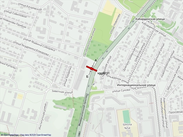 Университетский пр-т, д.13 по Песчанокопская, 150м до пересечения с ул. Сухова, справа при движении из центра
