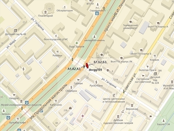 Ленина пр-т, справа при движении в Краcнооктябрьский район, за пересечением с ул.Гагарина, рядом ВОЛГТУ