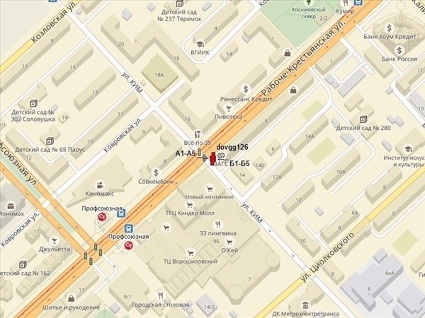 Рабоче-Крестьянская ул., справа при движении в центр, за пересечением с ул.КИМ, рядом с ЗАГСом Ворошиловского района