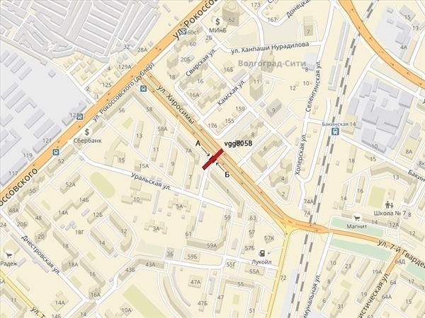 Хиросимы ул., 1, справа при движении в центр, 300м до ул.Пархоменко