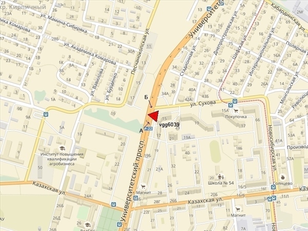 Университетский пр-т, 15, перед пересечением с ул.Сухова, 700м до гипермаркета "Лента", справа при движении в центр