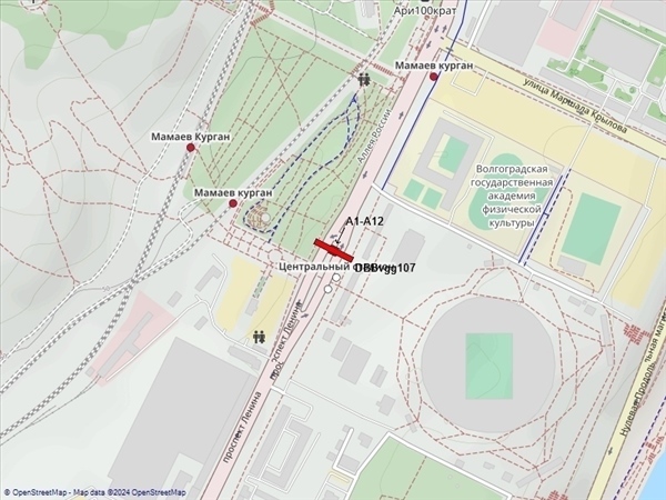 Ленина пр-т, СК"Волгоград Арена" и парк "Победы", в начале разделительного острова, слева при движении в центр