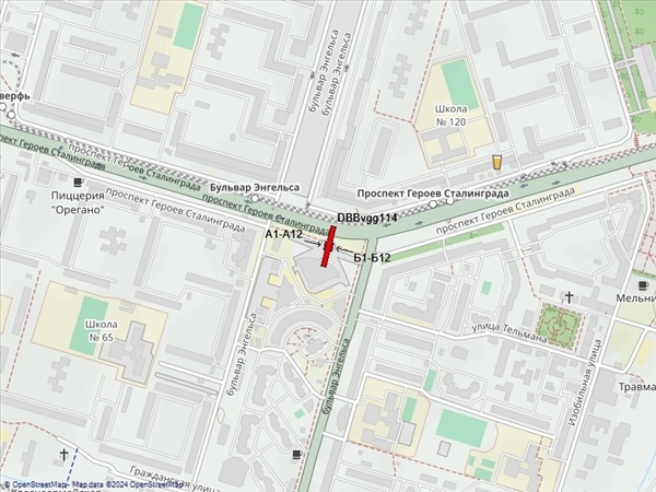 Героев Сталинграда пр-т, 60м до бульвара Энгельса, напротив здания "Сбербанка", справа при движении из центра
