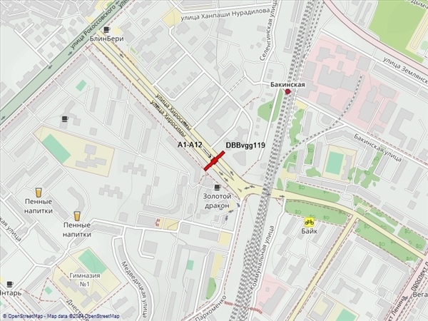 Хиросимы ул., напротив д.1, пересечение с ул. 7-й Гвардейской и Пархоменко, разделительная полоса, слева при движении к пр-ту Ленина