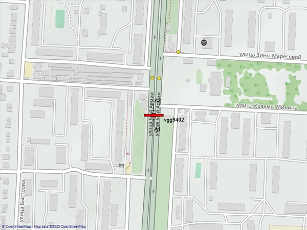 64-й Армии ул., 87Б, пересечение с ул.Минина, разделительная полоса, сторона А1 - слева при движении в центр, А2 - слева при движении из центра