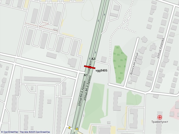 64-й Армии ул.139Б, разделительная полоса, сторона А1 - слева при движении в центр, А2 - слева при движении из центра
