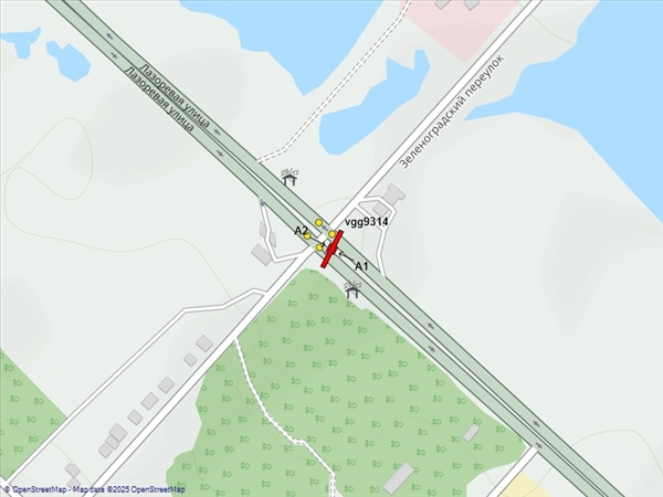 Лазоревая ул., пересечение с Зеленоградским пер., у АЗС"Роснефть", разделительная полоса (сторона А1 - слева при движении в центр, А2 - слева при движении из центра)