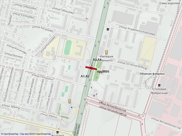 Университетский пр-т, 92, 100м от ул.Полухина, разделительный остров, стороны А1,А2 - слева при движении в центр, А3,А4 - слева при движении из центра, к ТРЦ"Акварель"