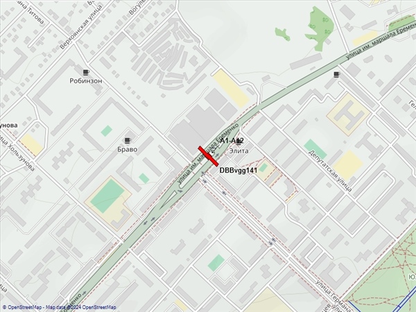 Еременко ул., напротив д.130, разделительный остров в районе пересечения с ул. Титова, слева при движении в центр