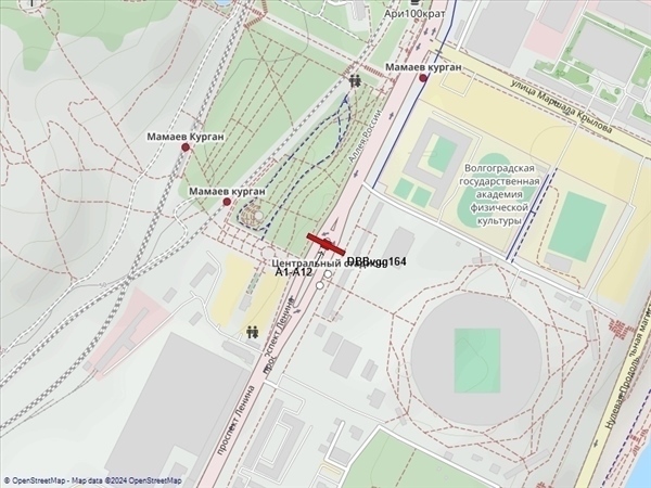 Ленина пр-т, СК"Волгоград Арена" и парк "Победы", в конце разделительного острова, слева при движении из центра